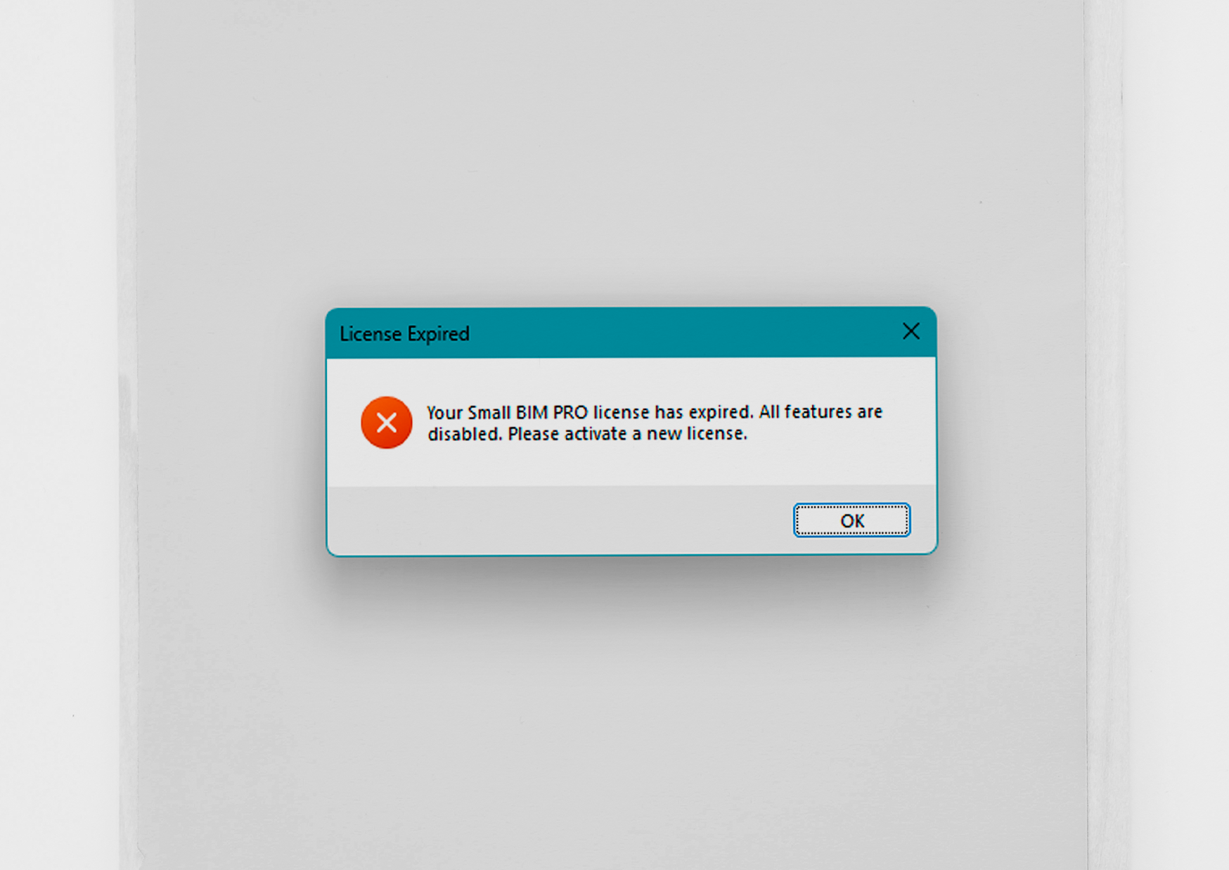 หมายเหตุ: การแจ้งเตือน จะแจ้งเตือนก่อนหมดอายุจริงล่วงหน้า 7 วัน ทุกครั้งที่เปิดใช้งานโปรแกรม Revit "Your Small BIM PRO license has expired. All features are disabled. Please activate a new license." ต่ออายุโดยการติดต่อ Small BIM Studio ได้ทุกช่องทาง