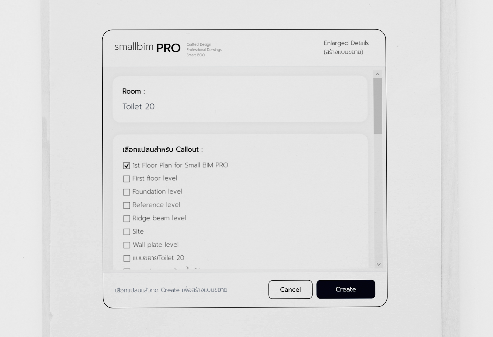 คำสั่งสำหรับการเขียนแบบขยาย Room แบบอัตโนมัติ โดยสามารถสร้างแบบขยายห้องน้ำโดยมี Callout ในแปลนที่กำหนดเองได้ รวมถึง Section ตัดผ่าน Room เหล่านั้นทุกด้าน เพื่อให้ได้แบบขยายห้องน้ำ แบบครบเครื่อง พร้อม Tags