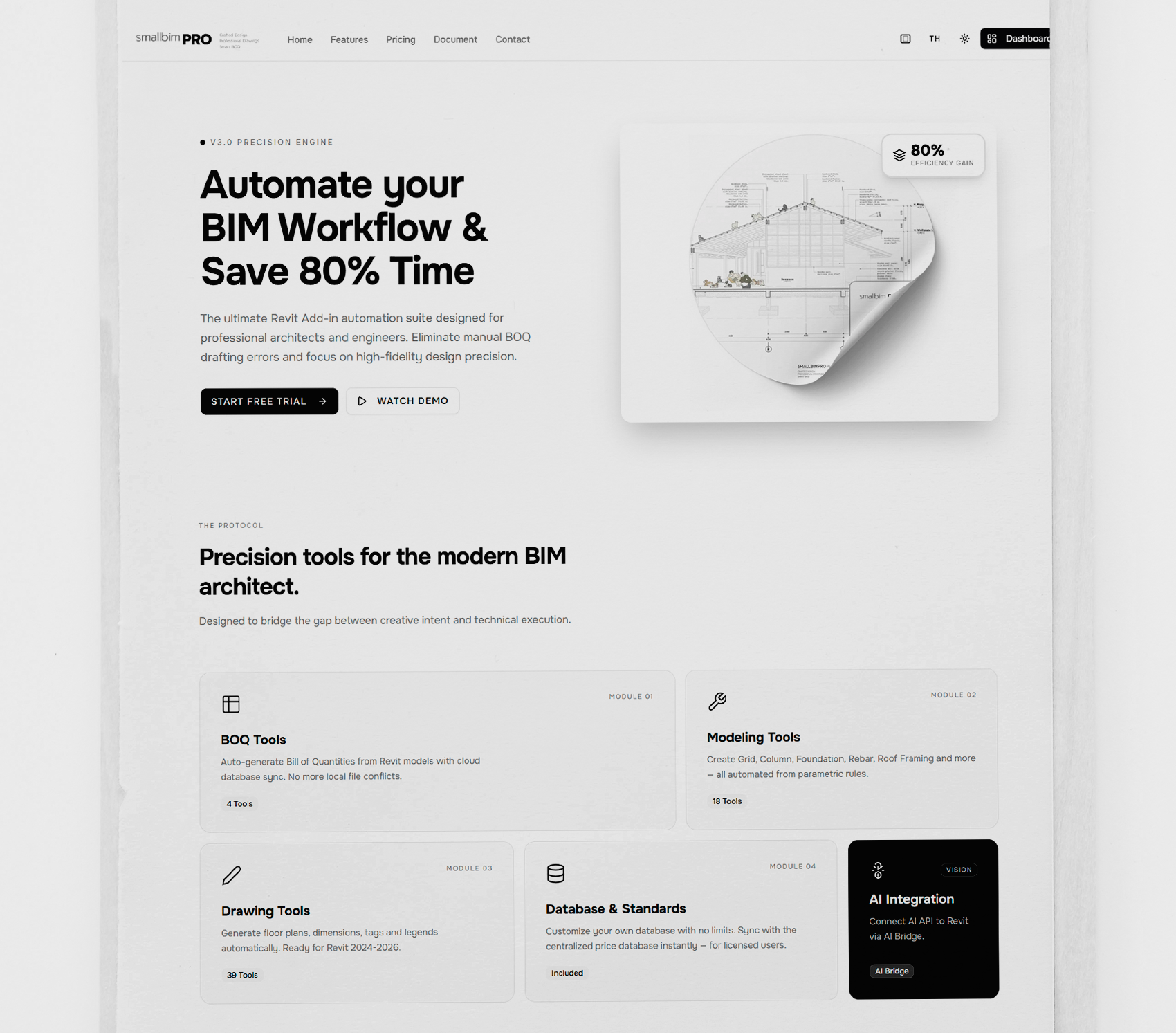 มีการพัฒนาเว็บไซต์ใหม่ ที่สามารถทำงานได้ดีมากๆ มี AI ให้ใช้งาน สร้าง Project BOQ ได้, สร้างระบบฐานข้อมูลของตัวเองได้ รวมถึงเชื่อมต่อกับ Small BIM PRO Revit Addin ได้อย่างลื่นไหน